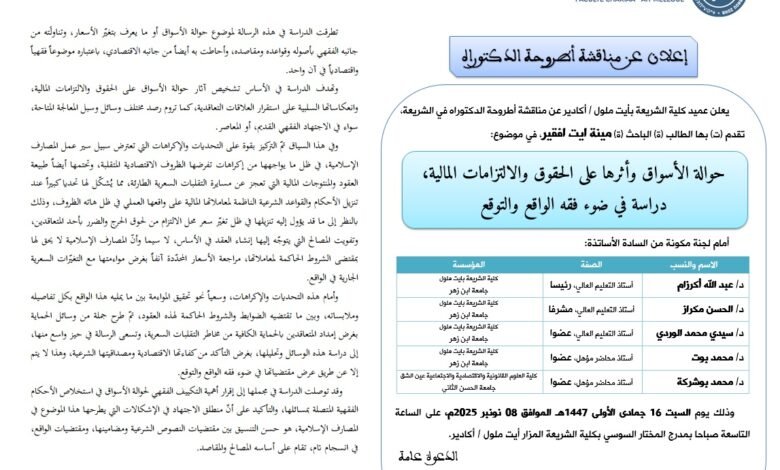 حوالة الأسواق وأثرها على الحقوق والالتزامات المالية، دراسة في ضوء فقه الواقع والتوقع