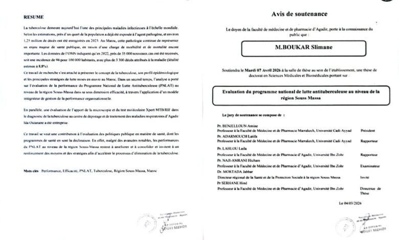 Evaluation du programme national de lutte antituberculeuse au niveau de la région Souss Massa