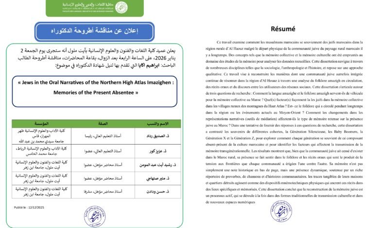 Jews in the Oral Narratives of the Northern High Atlas Imazighen : Memories of the Present Absentee