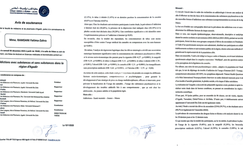 Les addictions avec substances et sans substances dans la région d’Agadir