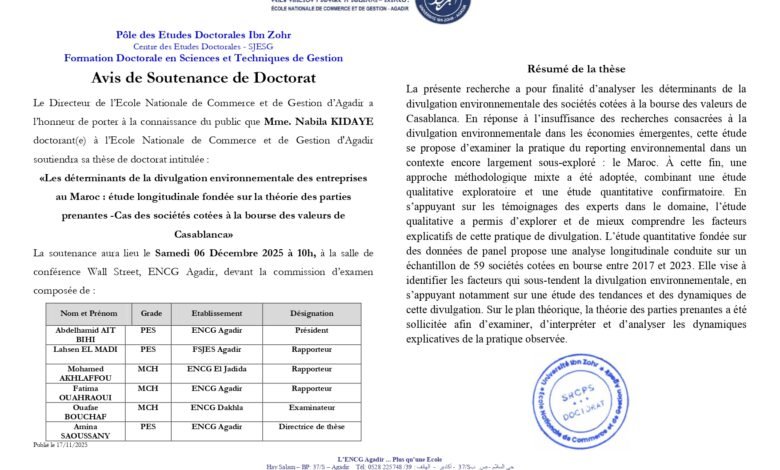 Les déterminants de la divulgation environnementale des entreprises au Maroc : étude longitudinale fondée sur la théorie des parties prenantes -Cas des sociétés cotées à la bourse des valeurs de Casablanca