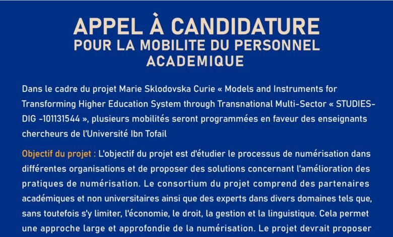 The post Appel à Candidature appeared first on Univesité Ibn Tofail.