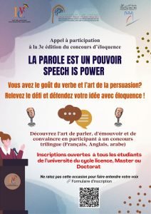 Le Centre Universitaire des Langues Vivantes et la Faculté des Langues, des Arts et des Sciences Humaines de l’Université Hassan 1er organisent la troisième édition du Concours d’Éloquence Trilingue sous le thème : « La parole est un pouvoir ».
