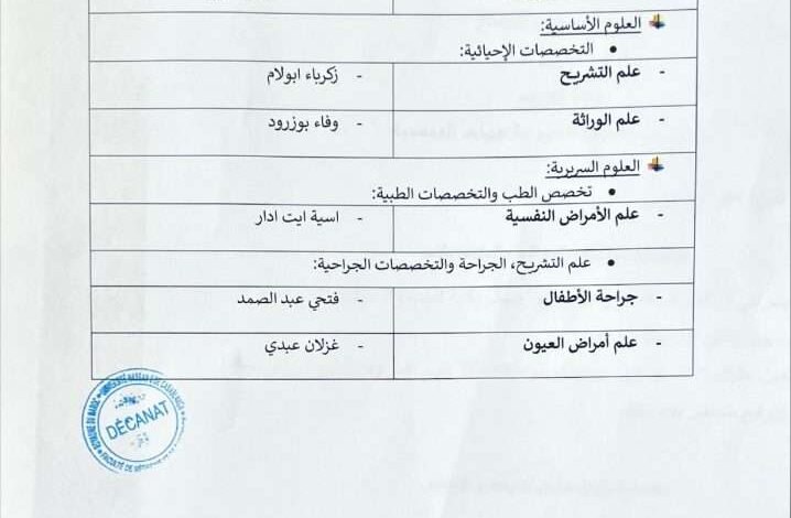Liste des candidats admis au concours de recrutement des maîtres de conférences au profit de la FMP de Béni Mellal رابط المصدر
