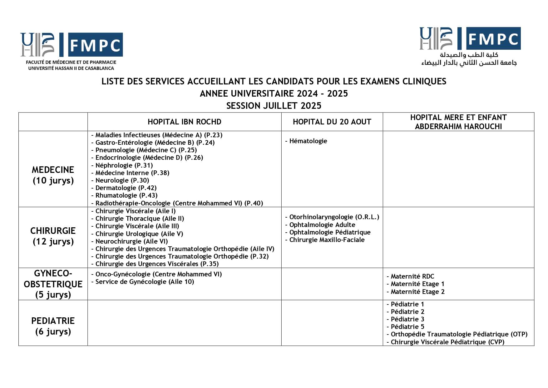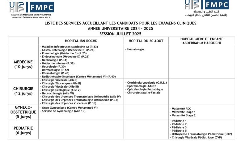 LISTE DES SERVICES-CLINIQUES – SESSION JUILLET 2025 رابط المصدر