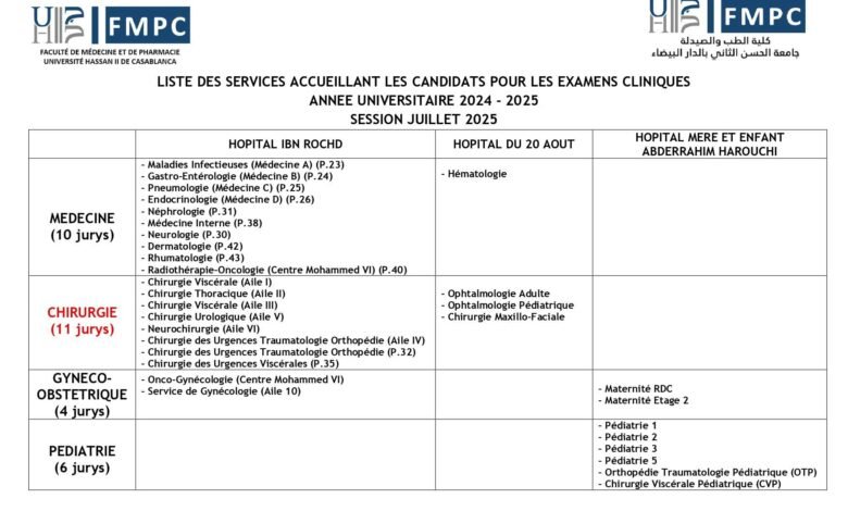 LISTE DES SERVICES-CLINIQUES – SESSION JUILLET 2025 رابط المصدر