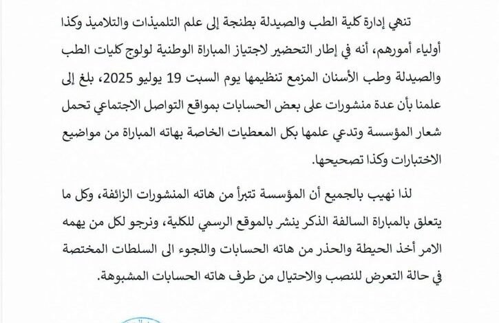 الرئيسية/الكليات المغربية/كليات الطب و الصيدلة FMP/كلية الطب والصيدلة طنجة/بيان كلية الطب والصيدلة طنجة بيان Rachid Ahitass أرسل بريدا إلكترونيا يوليو 4, 20250 0 أقل من دقيقة فيسبوك X لينكدإن بينتيريست Reddit Pocket ماسنجر ماسنجر واتساب تيلقرام مشاركة عبر البريد طباعة رابط التدوينة نسخ الرابط تم نسخ الرابط Rachid Ahitass أرسل بريدا إلكترونيا يوليو 4, 20250 0 أقل من دقيقة فيسبوك X لينكدإن بينتيريست Reddit Pocket ماسنجر ماسنجر واتساب تيلقرام مشاركة عبر البريد طباعة شاركها فيسبوك X لينكدإن بينتيريست Reddit Pocket ماسنجر ماسنجر واتساب تيلقرام ڤايبر مشاركة عبر البريد طباعة