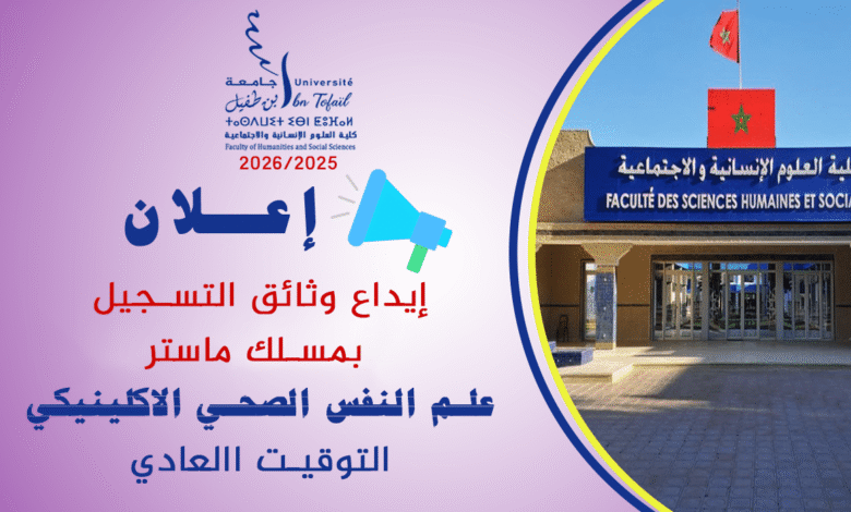 إعلان خاص بالطلبة المقبولين بصفة نهائية للتسجيل بمسلك ماستر علم النفس الصحي الاكلينيكي 2025-2026 (التوقيت العادي)