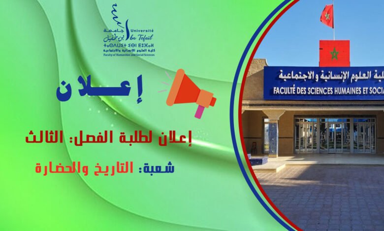 L’article إعلان لطلبة الفصل الثالث شعبة التاريخ والحضارة est apparu en premier sur Faculté des Sciences Humaines et Sociales – Kénitra.