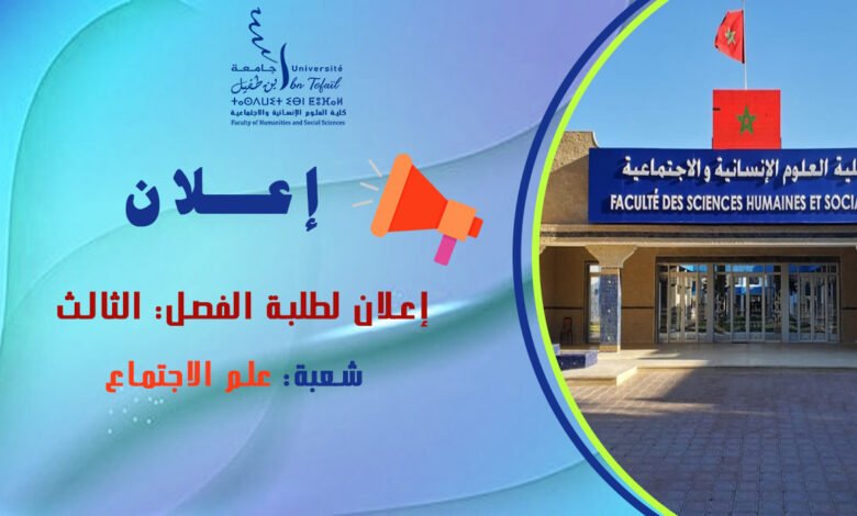 L’article إعلان لطلبة الفصل الثالث شعبة المساعدة الاجتماعية est apparu en premier sur Faculté des Sciences Humaines et Sociales – Kénitra.
