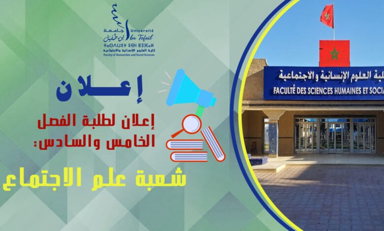 L’article إعلان لطلبة الفصل الخامس والسادس شعبة علم الاجتماع (حصة البحوث) est apparu en premier sur Faculté des Sciences Humaines et Sociales – Kénitra.