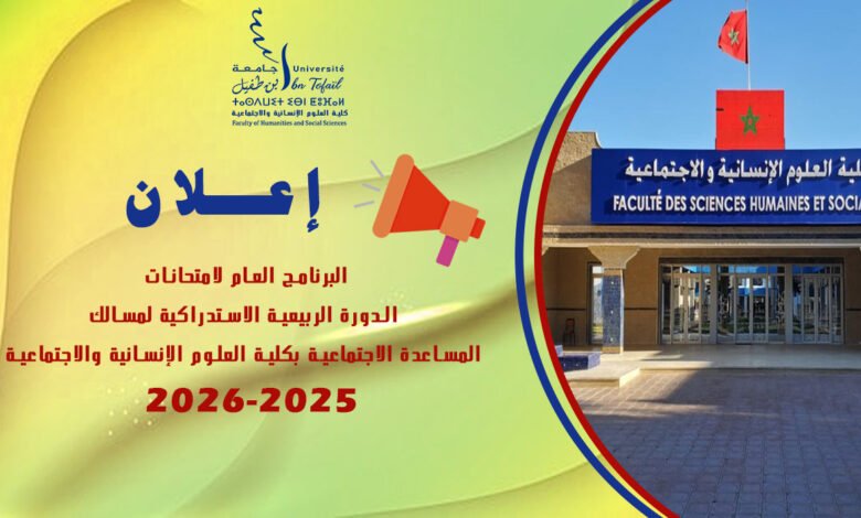 L’article البرنامج العام لامتحانات الدورة الخريفية العادية لمسالك المساعدة الاجتماعية للموسم الجامعي 2026/2025 est apparu en premier sur Faculté des Sciences Humaines et Sociales – Kénitra.