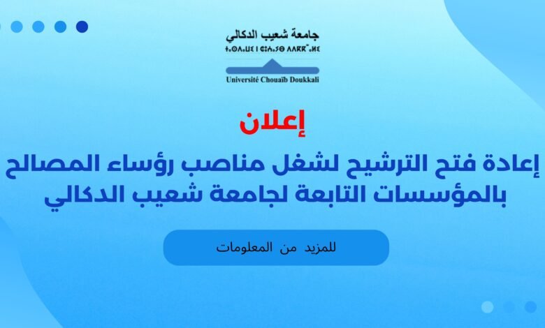 إعادة فتح الترشيح لشغل مناصب رؤساء المصالح بالمؤسسات التابعة لجامعة شعيب الدكالي