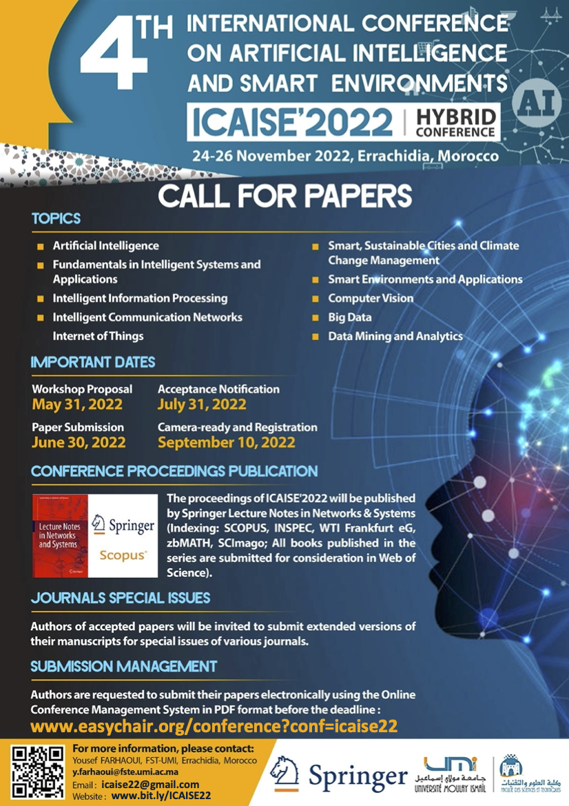 4th International Conference on Artificial Intelligence and Smart Environment (ICAISE’22), 24-26 novembre 2022