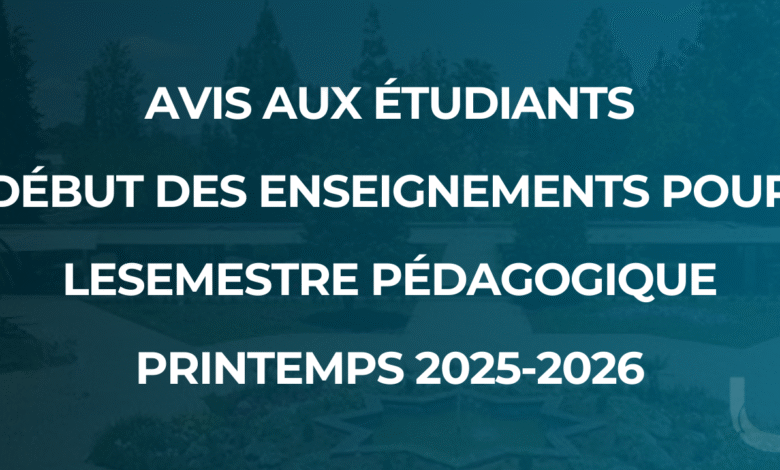 Avis aux étudiants – Début des enseignements pour lesemestre pédagogique – Printemps 2025-2026