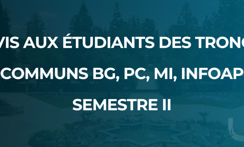 Avis aux étudiants des troncs communs BG, PC, MI, Infoap-Semestre II