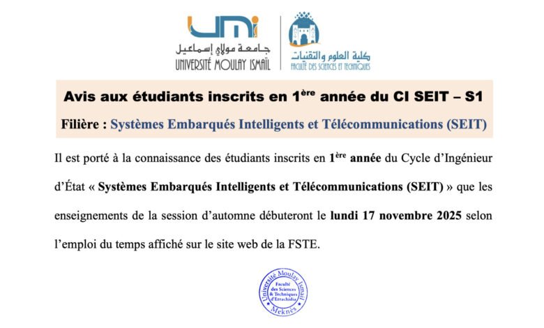 Avis aux étudiants inscrits en 1 ère année du CI SEIT – S1 Source link