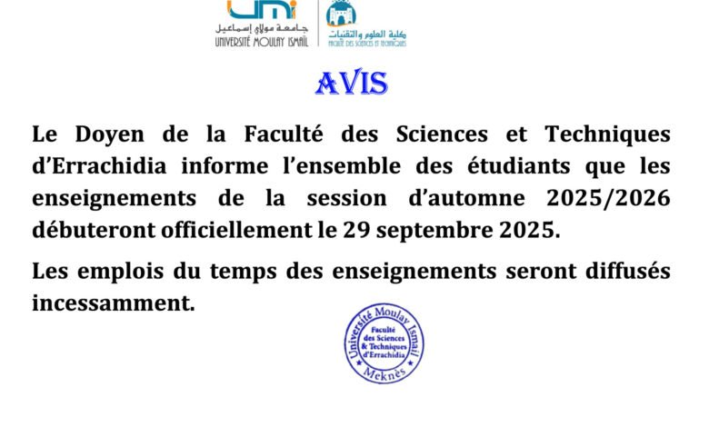Avis: Début des enseignements de la session d’automne 2025/2026