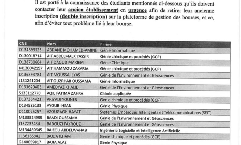 la liste des étudiants concernés Source link