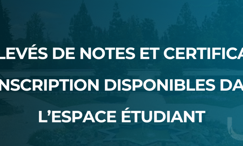 AVIS : Relevés de notes et certificats d’inscription disponibles dans l’Espace Étudiant