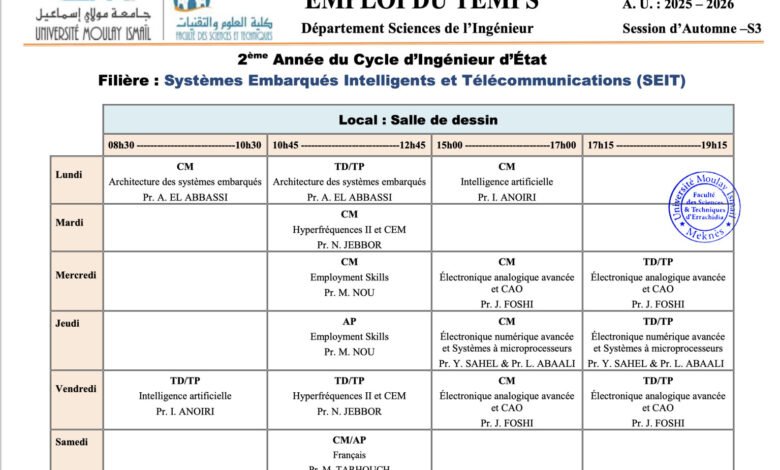 Cycle d’Ingénieur d’État SEIT: Emploi du temps S3 Source link