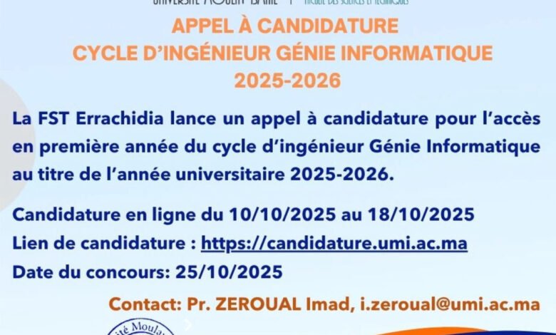 Cycle d’ingénieur Génie Informatique : Appel à candidature
