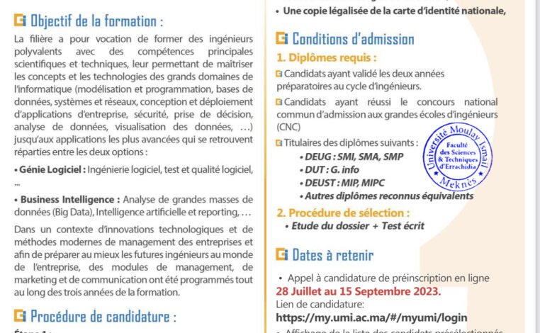 الرئيسية/الكليات المغربية/كليات العلوم و التقنيات FST/Cycle d’Ingénieur Génie Informatique : Appel à candidature كليات العلوم و التقنيات FST Cycle d’Ingénieur Génie Informatique : Appel à candidature Rachid أرسل بريدا إلكترونيا يوليو 27, 20230 8 أقل من دقيقة فيسبوك X لينكدإن بينتيريست Reddit Pocket ماسنجر ماسنجر واتساب تيلقرام مشاركة عبر البريد طباعة Source link نسخ الرابط تم نسخ الرابط Rachid أرسل بريدا إلكترونيا يوليو 27, 20230 8 أقل من دقيقة فيسبوك X لينكدإن بينتيريست Reddit Pocket ماسنجر ماسنجر واتساب تيلقرام مشاركة عبر البريد طباعة شاركها فيسبوك X لينكدإن بينتيريست Reddit Pocket ماسنجر ماسنجر واتساب تيلقرام ڤايبر مشاركة عبر البريد طباعة