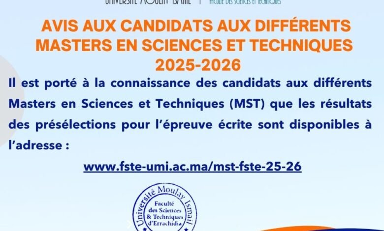 Formations Master en Sciences et Techniques : Résultats de présélection 2025-2026