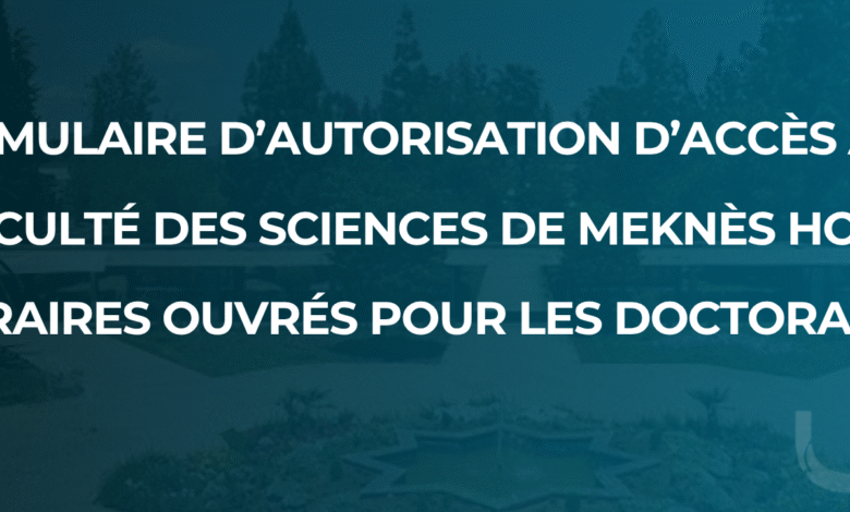 L’article Formulaire d’autorisation d’accès à la Faculté des Sciences de Meknès hors horaires ouvrés pour les doctorants est apparu en premier sur Faculté des sciences de Meknès.