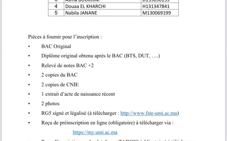 Liste des étudiants externes autorisés à s’inscrire en LST : Biologie Végétale Appliquée