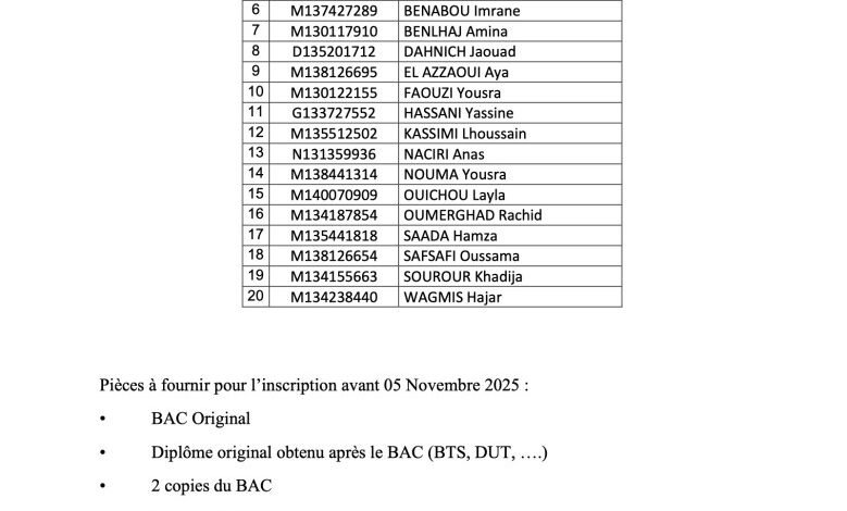 Liste des étudiants externes autorisés à s’inscrire en LST : Energies renouvelables Année universitaire : 2025-2026