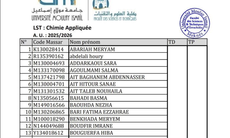 الرئيسية/الكليات المغربية/كليات العلوم و التقنيات FST/Liste des étudiants inscrits en S5 : LST chimie appliquée كليات العلوم و التقنيات FST Liste des étudiants inscrits en S5 : LST chimie appliquée Rachid أرسل بريدا إلكترونيا منذ ساعتين0 0 أقل من دقيقة فيسبوك X لينكدإن بينتيريست Reddit Pocket ماسنجر ماسنجر واتساب تيلقرام مشاركة عبر البريد طباعة Liste-LST-CA-2025_2026 Source link نسخ الرابط تم نسخ الرابط Rachid أرسل بريدا إلكترونيا منذ ساعتين0 0 أقل من دقيقة فيسبوك X لينكدإن بينتيريست Reddit Pocket ماسنجر ماسنجر واتساب تيلقرام مشاركة عبر البريد طباعة شاركها فيسبوك X لينكدإن بينتيريست Reddit Pocket ماسنجر ماسنجر واتساب تيلقرام ڤايبر مشاركة عبر البريد طباعة