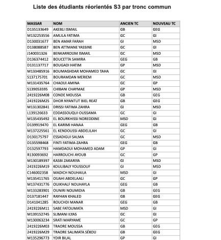Liste des étudiants réorientés S3 par tronc commun   Source link