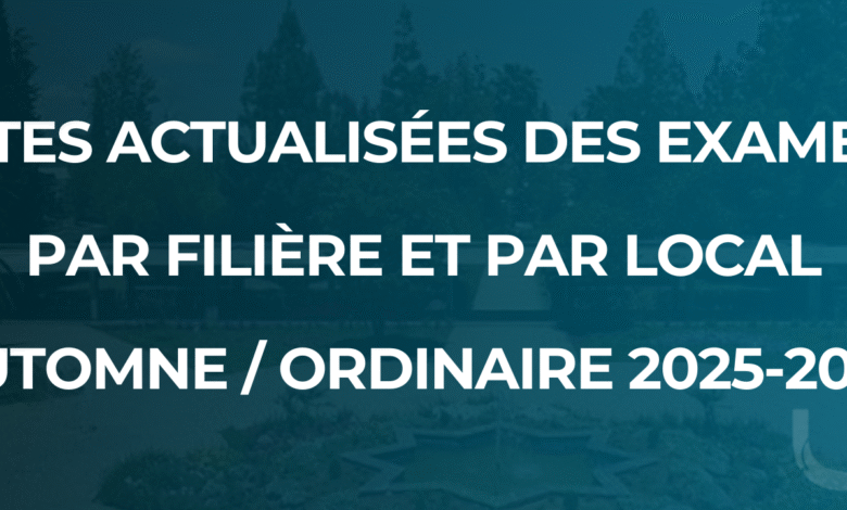 Listes actualisées des examens par filière et par local : Automne / Ordinaire 2025-2026