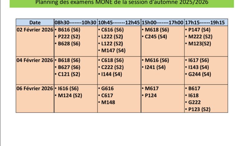 Planning rectifié des examens du MONE – Session d’automne Source link