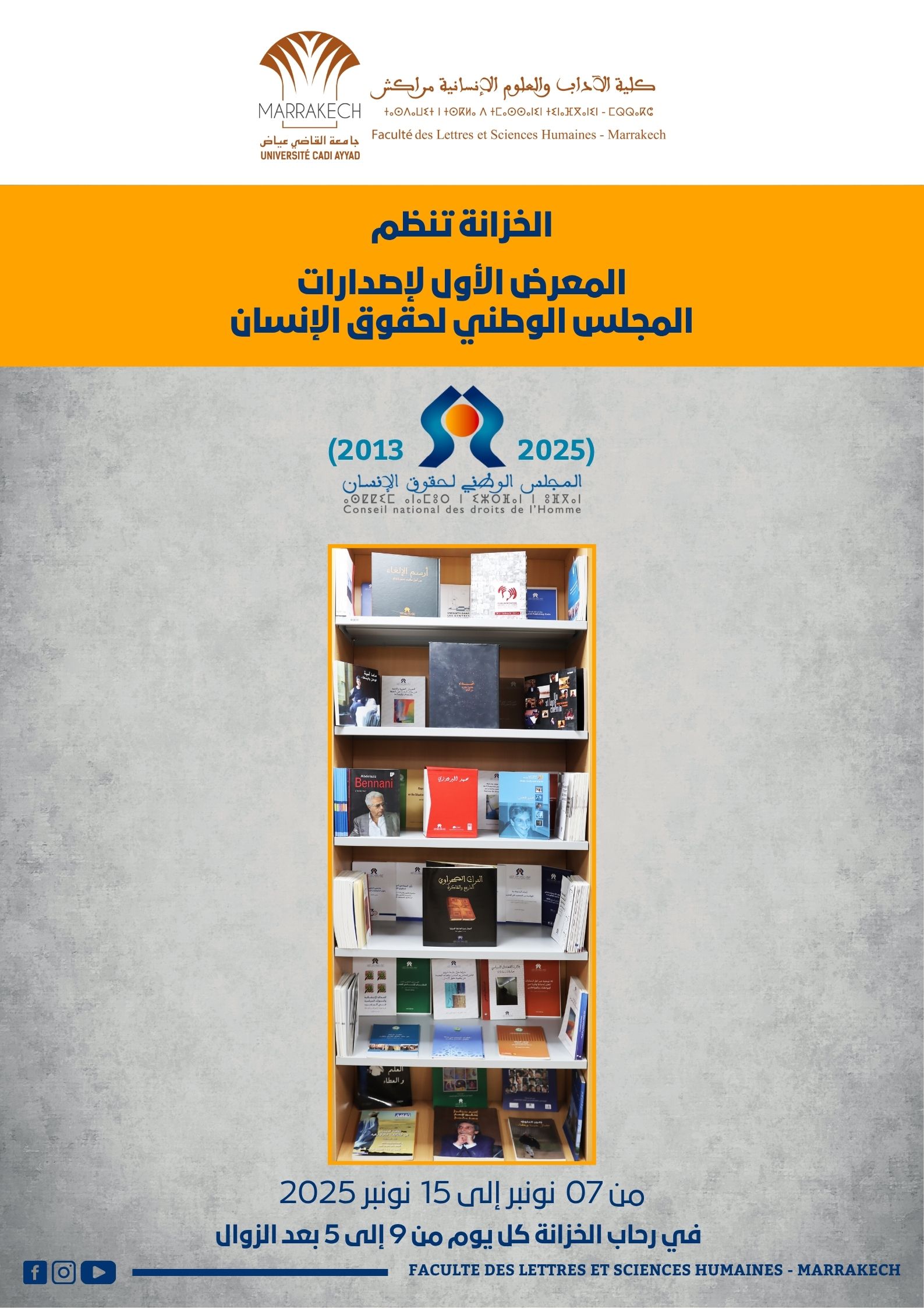 L’article الخزانة تنظم المعرض الأول لإصدارات المجلس الوطني لحقوق الإنسان est apparu en premier sur Faculté des Lettres et Sciences Humaines Marrakech.