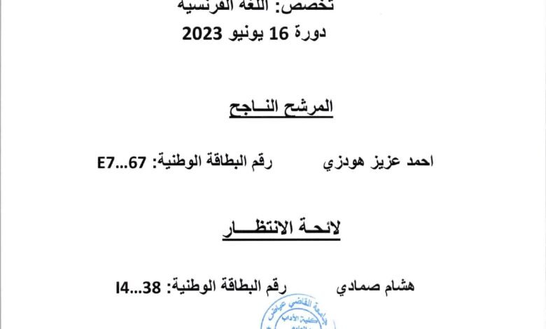 النتيجة النهائية لمباراة توظيف أستاذ التعليم العالي مساعد تخصص: اللغة الفرنسية