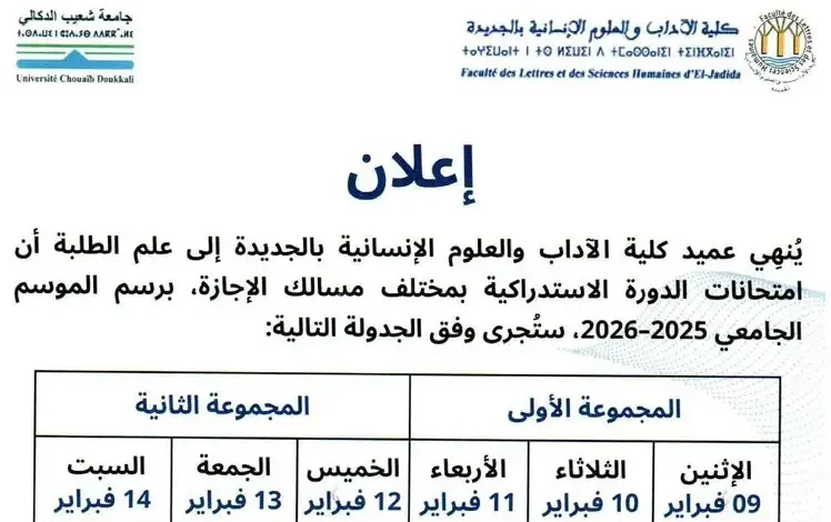 برنامج امتحانات الدورة الاستدراكية بمختلف مسالك الإجازة