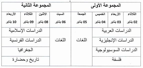 - -إجراء الامتحانات حسب البرنامج التالي: