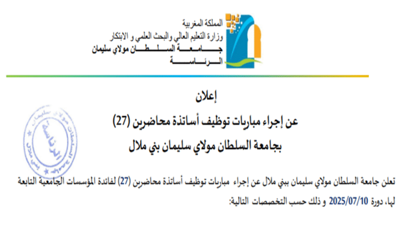 إعلان عن إجراء مباريات توظيف أساتذة محاضرين