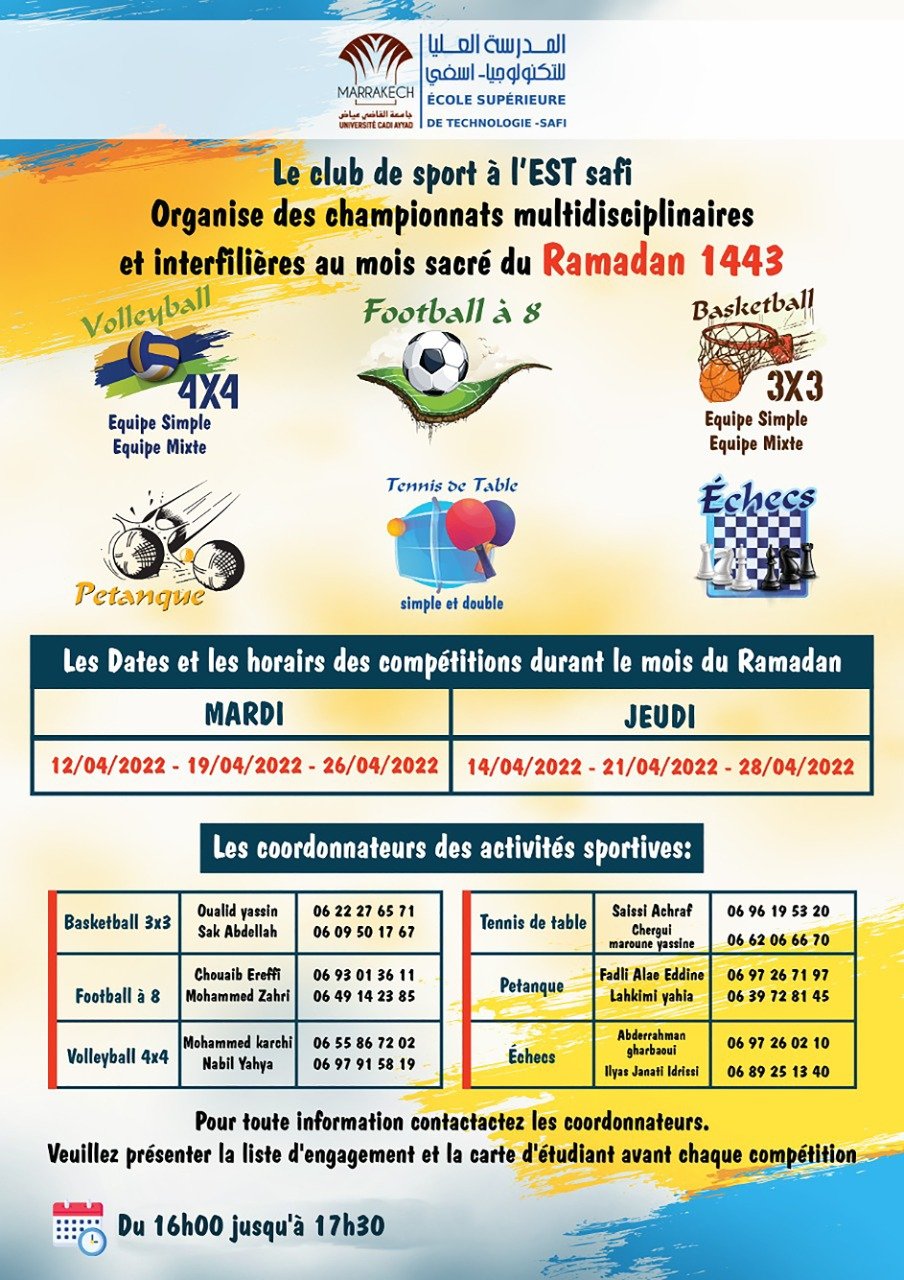 Le club de sport à l’EST Safi Organise des championnats multidisciplinaires au mois sacré du RAMADAN