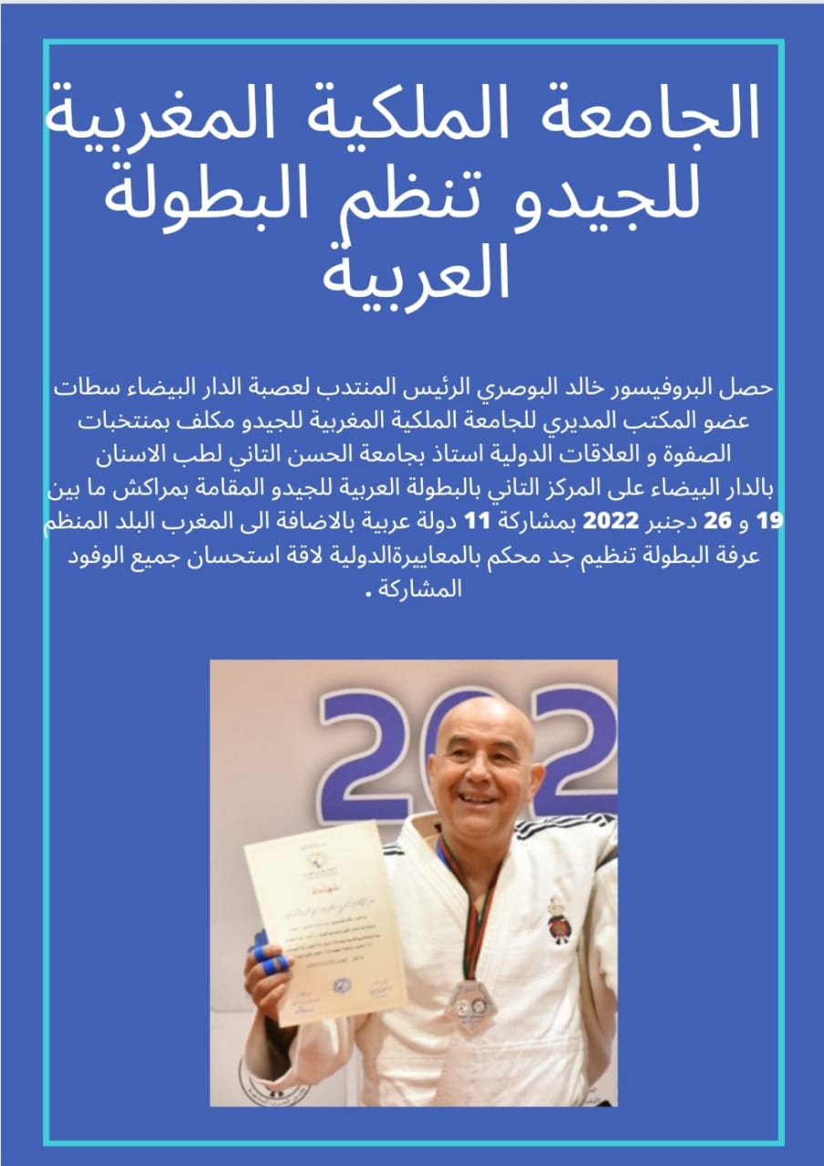 Faculté de Médecine dentaire » Professeur Khalid El Boussairi Médaillé dans Le championnat Arabe de Judo Marrakech 19 au 26 décembre 2022