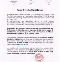 إعلان عن فتح باب الترشيح لشغل منصـب مدير المدرسة الوطنية للتجارة والتسيير بسطات