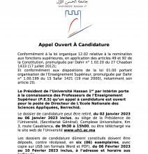 Appel à candidature est ouvert pour le poste de Directeur de L’Ecole Nationale des Sciences Appliquées, Berrechid
