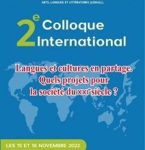Deuxième Colloque International, sous le thème : Langues et cultures en partage. Quels projets pour la société du 21e siècle ?