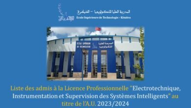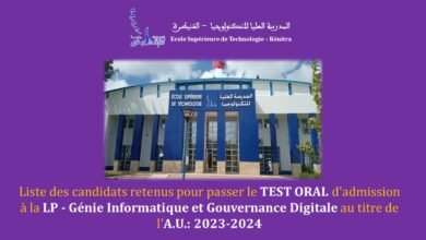 Il est porté à la connaissance des candidats admis en LISTE COMPLEMENTAIRES à l’Ecole Supérieure de Technologie de Kénitra au…