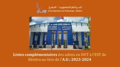 Listes complémentaires des admis en DUT à l’EST de Kénitra au titre de l’A.U.: 2023-2024 – Ecole Supérieure de Technologie