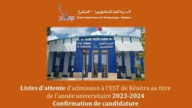 Listes d’attente d’admission à l’EST de Kénitra au titre de l’année universitaire 2023-2024 : Confirmation de candidature – Ecole Supérieure de Technologie