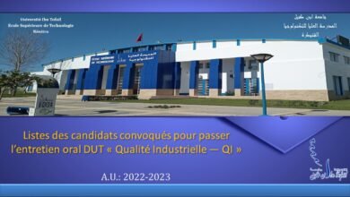 Listes des candidats convoqués pour passer l’entretien oral DUT « Qualité Industrielle — QI » au titre de l’A.U.: 2022-2023 – Ecole Supérieure de Technologie