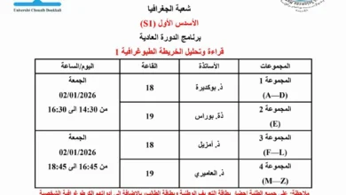برنامج وحدة قراءة و تحليل الخريطة الطبوغرافية I الأسدس الأول (S1) الدورة العادية الموسم الجامعي 2026/2025 – FLSHJ | Faculté des…
